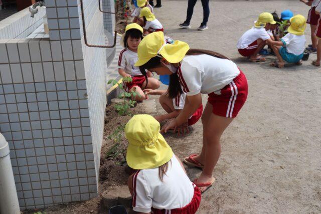 | 園に戻り花壇に苗を植えました | ||