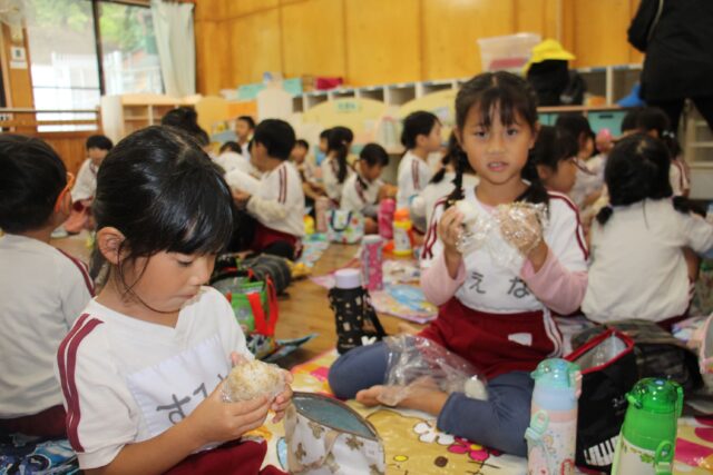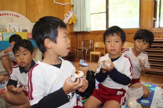 | おにぎりを食べようと思ったらポツポツ・ | ||