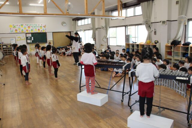 | 全体練習の後、各学年の合奏と歌を披露しました | ||