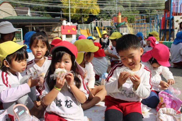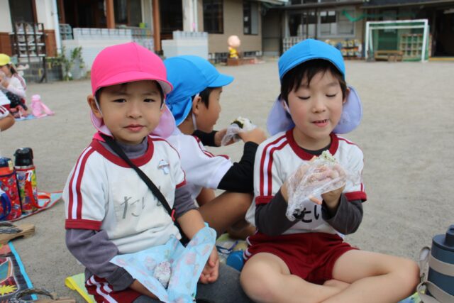 | 作ってもらったおにぎりを嬉しそうに見せてくれました | ||
