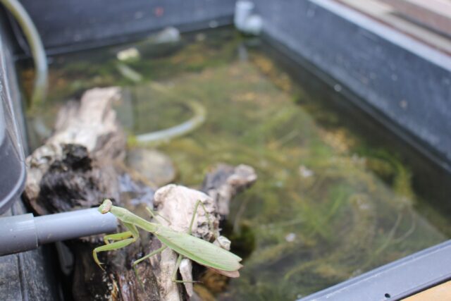 ビオトープにカマキリが来たよ
