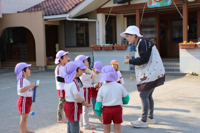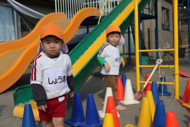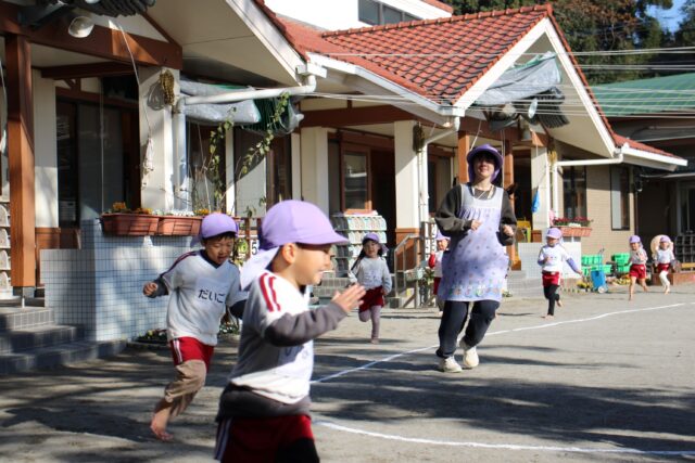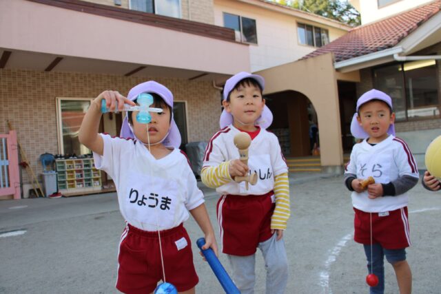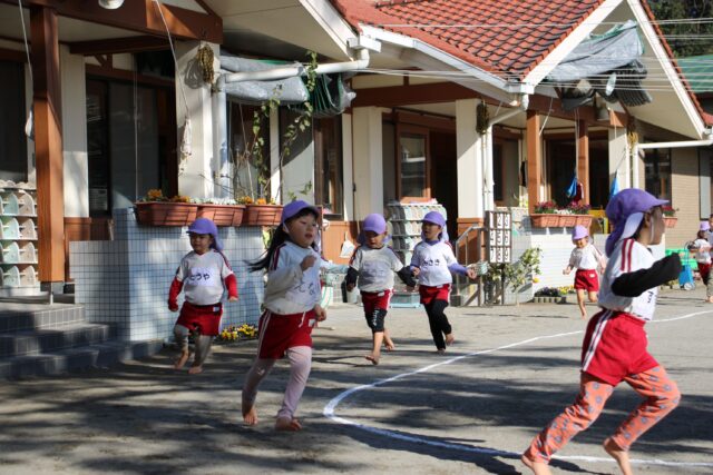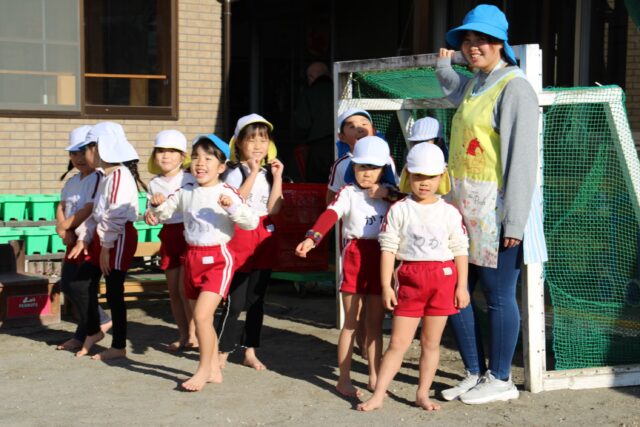朝の外あそび、年長さん元気です