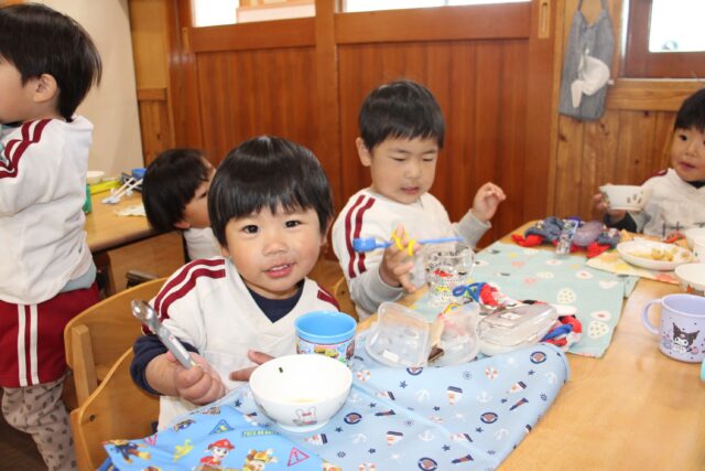 今日の給食もおいしーい