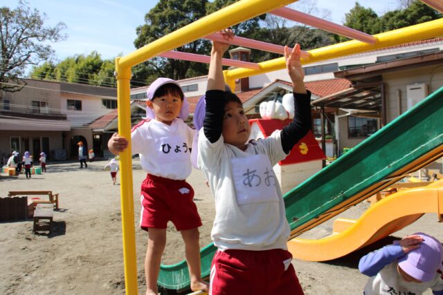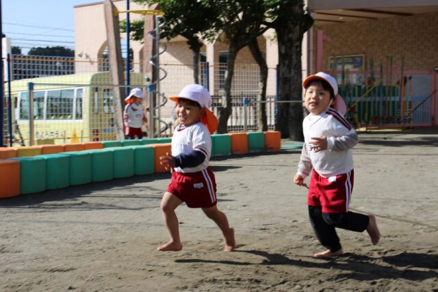 朝園庭でおもいきり遊んだよ