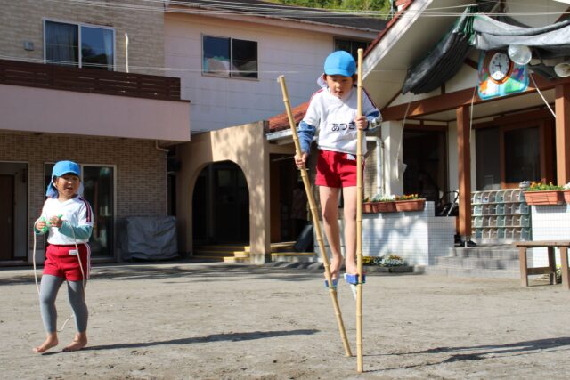 一番高い竹馬に挑戦中