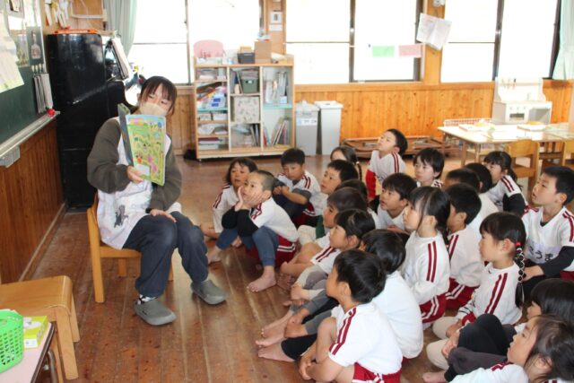 今日は絵本の読み聞かせ「モモの会」今年度最後でした