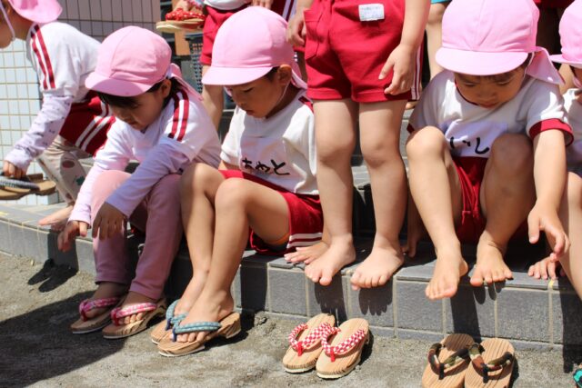年中さん初めての下駄をはきました