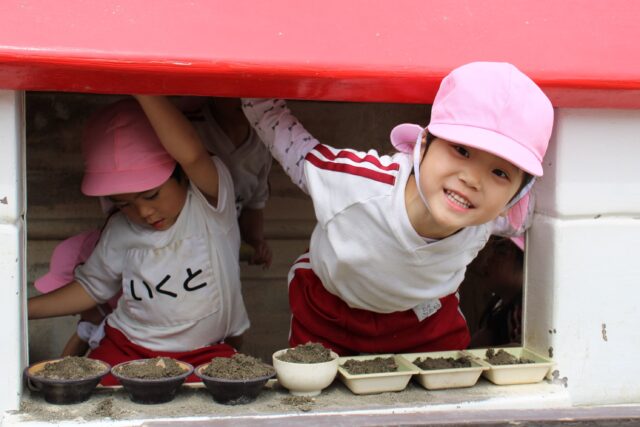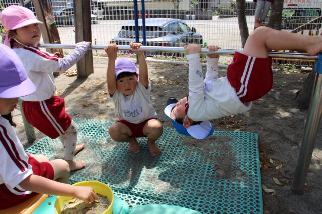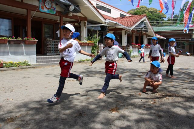 給食を食べて午後の外あそび