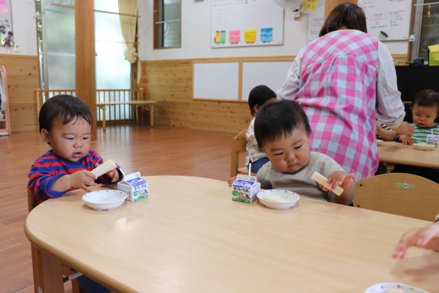 | 朝の自由あそびをじっくり楽しんだあとは・・・ | ||
