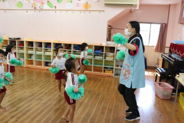 | 年長さんも運動会に向け隊形や振りを覚えていました。 | ||