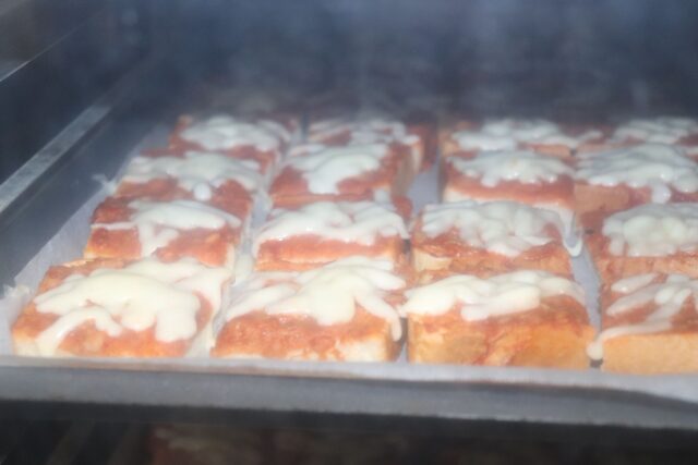 | 今日の預かり保育のおやつはピザトースト! | ||